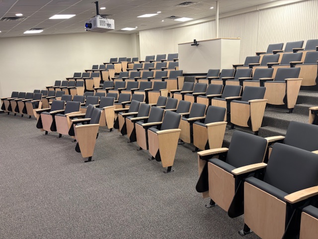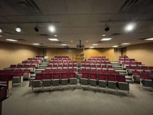 The remodeled auditorium reflects Ideal Work Solutions’ ability to manage both design and execution, creating a comfortable, durable, and professional setting for large-scale learning and presentations.